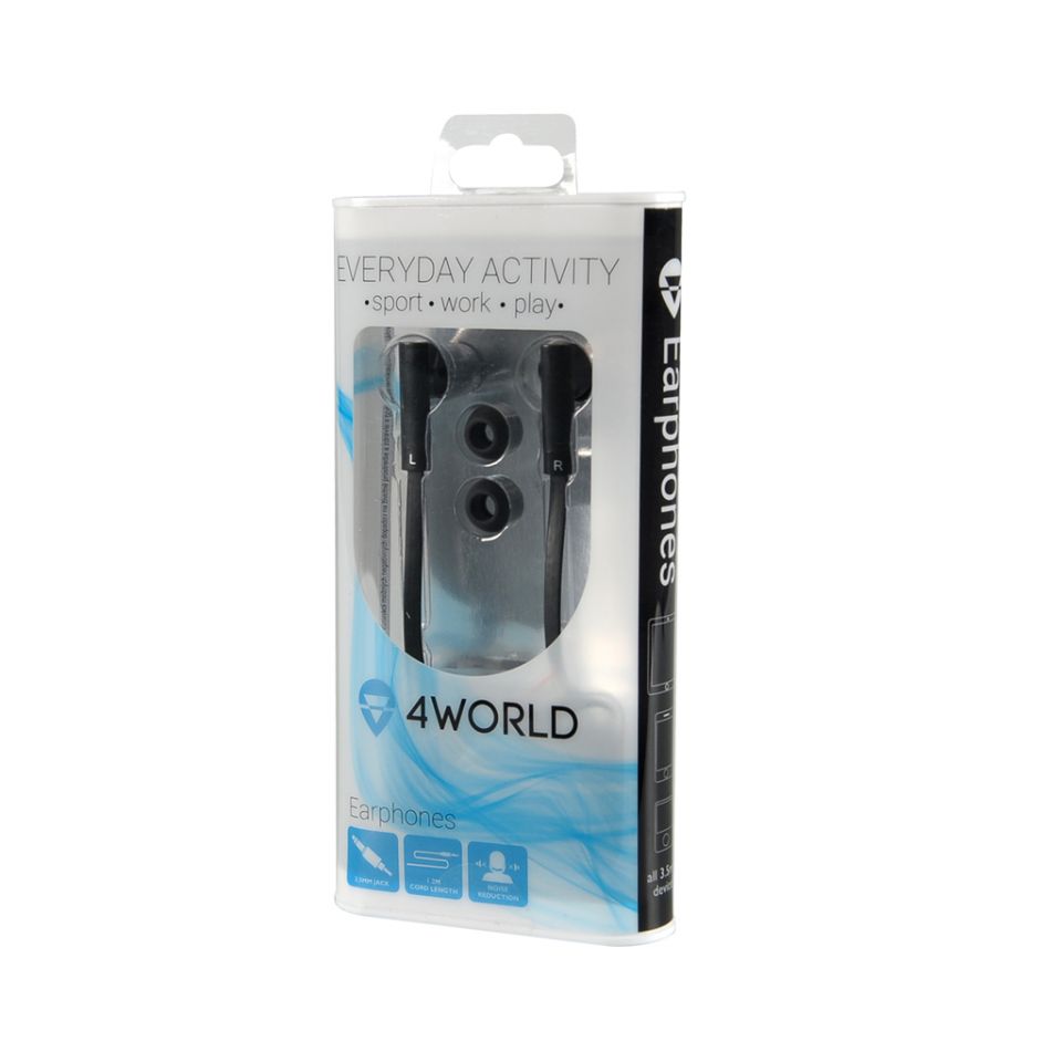 4WORLD Sluchátka MP3 Flat 3.5mm 1.2m Black