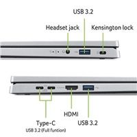 Aspire Go Spin 14 (AGSP14-31PT-33QY) - Windows 11 Home - Intel® Core™ 3 processor N355 - 16 GB LPDDR5 Memory On Board + N/A - 512GB PCIe Gen3 NVMe SSD PM4 + N/A - 14" WUXGA 1920x1200 16:10 IPS Glare Touch with Acer Active Pen (Wacom AES 2.0) support (NO pen in package) - Intel® Graphics - Wifi 6 802.11AX + BT 5.1 - HD USB TNR Camera with 2Mic. - 2x USB Type-C™ port supporting: USB 3.2 Gen 2 (up to 10 Gbps) / DisplayPort over USB-C / USB charging 5 V; 3 A / DC-in port 19 V; 45 W - 2x USB 3.2 Gen1 - HDMI 2.1 - Acer Sense App - Copilot Key - 53Wh Li-ion battery - 65W USB Type-C AC Adapter PCR50%_TCO9.0 - Pure Silver (Convertible laptop)NO pen in package