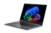 TravelMate X4 14 AI (TMX414-51-TCO-73PV) - Copilot+ PC - Windows 11 Professional 64-bit - Intel® Core™ Ultra 7 processor 258V - NPU Intel® AI Boost up to 47 TOPS - 32 GB LPDDR5X Memory On Board + N/A - 1024GB PCIe NVMe SSD PM4 + N/A - 14" WUXGA 1920x1200 16:10 IPS Anti-Glare 120Hz sRGB 100% 350nits - Intel® Arc™ 140V GPU - Wifi 7 Intel 802.11be 2x2 MU-MIMO CNVi + BT 5.4 LE Audio - FHD IR TNR Camera with 3Mic. and camera shutter + Vision sensor - Backlight KB - 2x USB Type-C port supporting: USB4® 40Gbps / Display port over USB-C / Thunderbolt™ 4 / USB charging 5 V; 3 A / DC-in port 15 or 20 V; 100 W - 1x USB-A 3.2 Gen1 - 1x USB-A 2.0 - HDMI 2.1 - TPM chip 2.0 - 65Wh Li-ion battery - 100W USB Type-C AC Adapter PCR50% TCO10 - MIL-STD 810H certification - TCO certified - Steel Gray - Aluminium LCD + bottom cover (laptop) - 1,27 kg