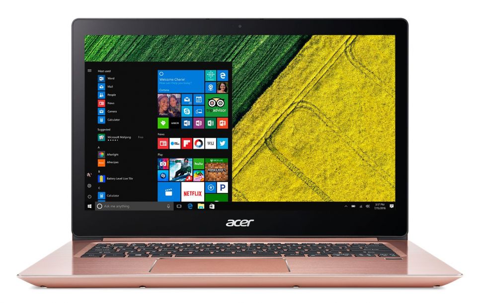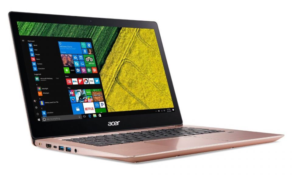 Swift 3 (SF314-52-P140)Windows 10 Home - Intel Pentium Gold 4415U Processor (2.3GHz, 2MB L3 cache) - 4 GB DDR4 Memory OB + N/A - 256GB SSD + N (M.2) - SD card reader - No DVD - 14" FHD IPS LCD with glass - HD Graphics - Intel 802.11ac + BT - HD Camera with 2Mic.- Acer fingerprint reader - Backlight KB - USB 3.1 Type-C port Gen 1 - 4-cell Li-Ion battery - 45W_3phy wall-mounted-EU AC Adapter - Sakura Pink Full Aluminium