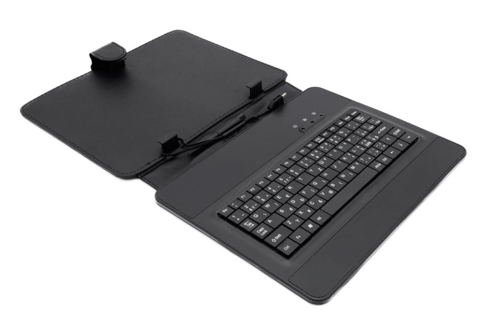 Koženkové universální pouzdro pro tablety 9,7" s vestavěnou USB klávesnicí a konektorem microUSB.- lehké, tenké, pevné a flexibilní pouzdro