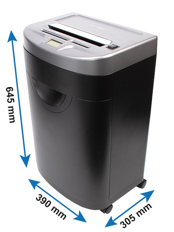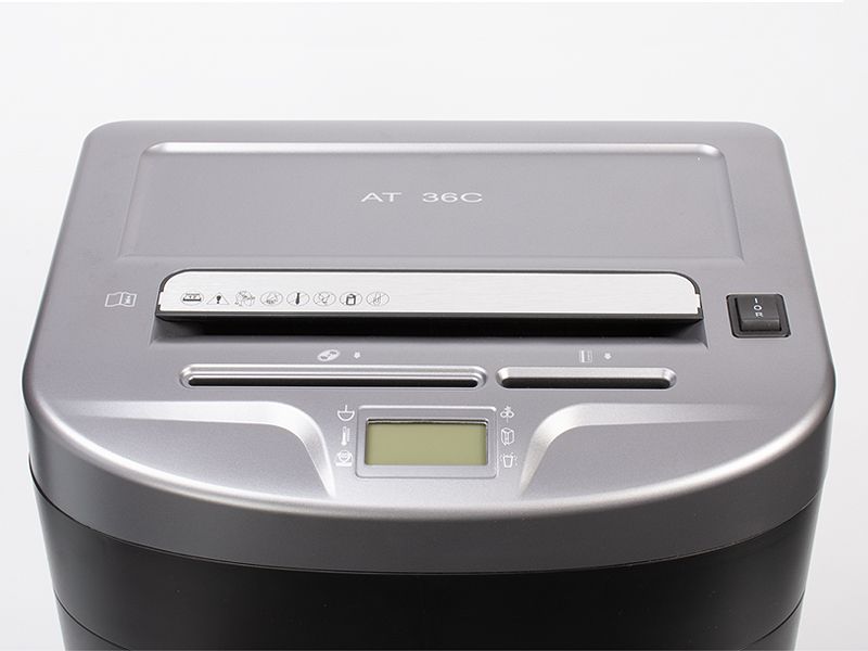 AT-36C Skartovací stroj, řez 2x10 mm, koš 35 l, až 12 listů A4 80g, CD i sponky 7 668 Kč