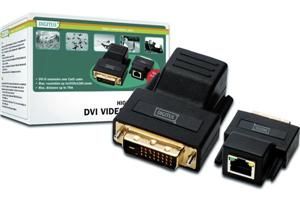 Extender DV po Cat5 kabelu, dosah až na 70mProdlužka DVI signálu, která používá klasický Cat5 UTP kabel pro prodloužení až na maximální vzdálenost 70m. Skládá se ze dvou modulů (oba v balení).