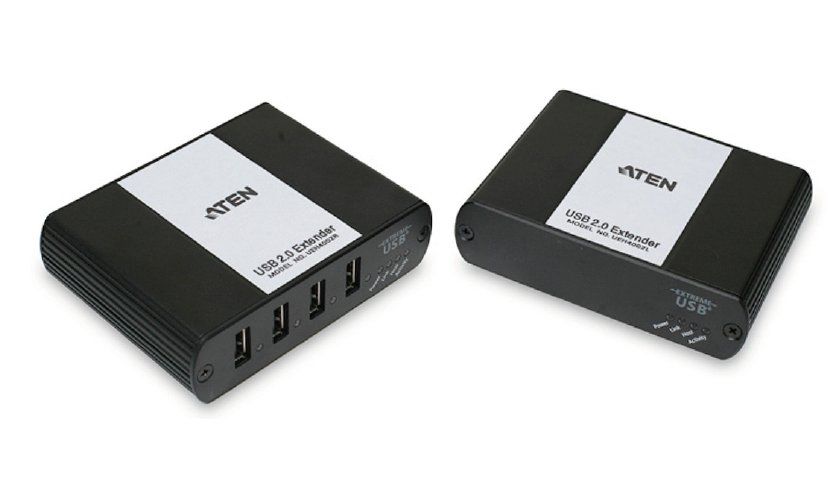 ATEN USB 2.0 prodlužka s 4portovým hubem do 100m po Cat5 kabeluZařízení umožňuje prodloužit signál USB 2.0 až do vzdálenosti 100m. K prodloužení se používá Cat5 kabel (není součástí balení), zařízení je ukončeno 4 portovým USB hubem, který umožní připojit až 4 zařízení najednou.