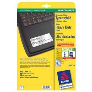 AVERY Typové štítky stříbrné velmi odolné vněj.vlivům 63,5x29,6mm, 27etiket na A4 20 1 001 Kč
