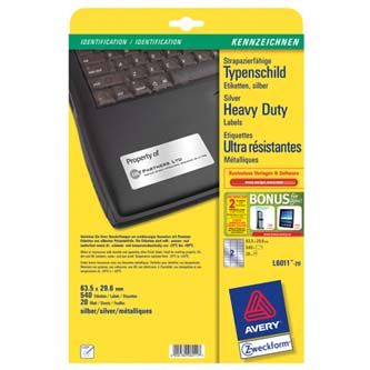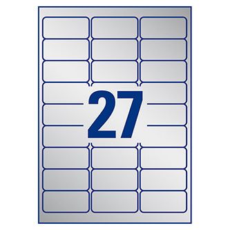 AVERY Typové štítky stříbrné velmi odolné vněj.vlivům 63,5x29,6mm, 27etiket na A4 20