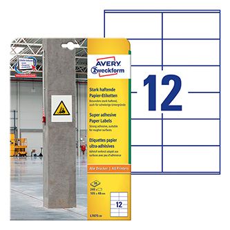 Avery Zweckform etikety 105mm x 48mm, A4, bílé, 12 etiket, s vysokou lepivostí, baleno po