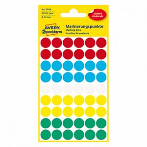 Avery Zweckform etikety 12mm, barevné, 54 etiket, značkovací, baleno po 5 ks, 3088, pro ru