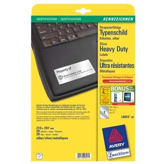 AVERY ZWECKFORM etikety 210 x 297 mm, A4, stříbrné, 1 etiketa, velmi odolné, baleno po 20
