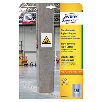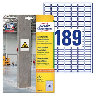 Avery Zweckform etikety 25.4mm x 10mm, A4, bílé, 189 etiket, s vysokou lepivostí, baleno p