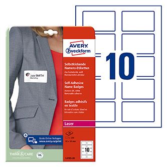 AVERY ZWECKFORM jmenovky 80mm x 50mm, A4, bílé, 10 etiket, samolepicí, baleno po 20 ks, L4