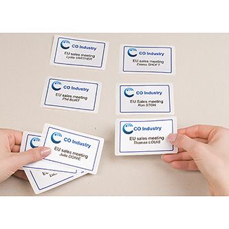 - Výsek na zadní straně umožňuje vyjmutí jmenovek z archu spolu s krycím papírem bez nutnosti jejich okamžitého nalepení