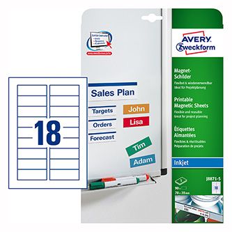 Vytiskněte vaše myšlenky, jednotlivé pracovní kroky nebo jména kolegů na magnetické štítky - můžete s nimi následně libovolně manipulovat, přesouvat je odstraňovat ty neaktuálnín nebo naopak přidávat nové. Vzhled magnetů si můžete sami určit a navrhnout na Vašem počítači a následně vytisknout na inkoustové tiskárně. Díky mikroperforaci lze od sebe jednotlivé štítky velice snadno oddělit. Magnetiské štítky se také skvěle hodí pro označení kovových regálů například ve skladu.
