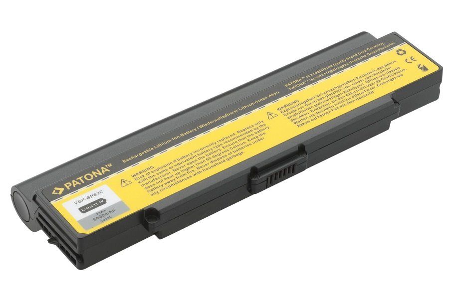 PATONA baterie pro Sony 6600 mAhKompatibilní baterie pro notebooky Sony. Baterie se vyznačují vysokou kvalitou, mají integrovanou ochranu proti přetížení a přebití. Je potřeba brát v úvahu, že velikost baterie je větší, než rozměry originální baterie standardně dodávané s notebookem a přístroj nemusí jít plnohodnotně otevřít.