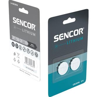 Baterie jednorázová lithiová, knoflíková, CR2016, 3V, Sencor, blistr, 2-packSpecifikace: