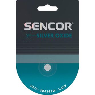 Baterie stříbrooxidové, V377, SR626SW, 1.55V, Sencor, blistr, 1-pack
