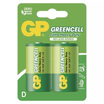 Baterie zinkochloridová, velký monočlánek, D, 1.5V, GP, blistr, 2-pack, Greencell