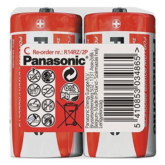 Baterie zinkouhlíková, R14, 1.5V, Panasonic, folie, 2-pack, cena za 1 ks baterie