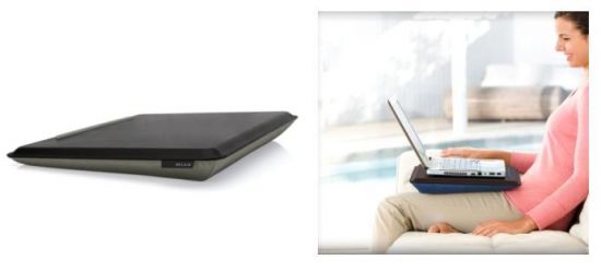 Tvarovaná podložka z příjemného materiálu pro práci na klíně. Je mírně skloněná a díky tomu zlepšuje komfort psaní a snižuje namáhání krku. Má tenký profil, je dobře skladovatelná, přenosná a snadno se čistí. Určená je pro notebooky do úhlopříčky 17".* Rozměry: 44,5 x 34,5 x 4 cm