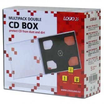 Box na 2 ks CD, průhledný, černý tray, LOGO, 10,4 mm, 5-pack