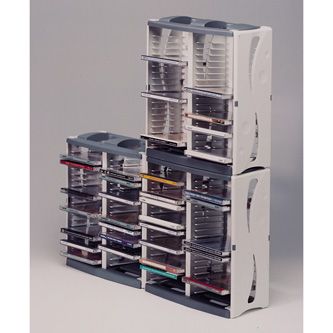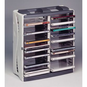Box na 40 ks CD, šedý, věž, stohovatelný svisle i vodorovně