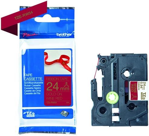 Brother originální páska do tiskárny štítků, Brother, TZE-RW54, zlatý tisk/vínově červený