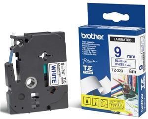 Originální kazeta s páskou Brother TZe-223 - modrý tisk na bílé, šířka 9 mmOriginální kazeta s laminovanou páskou TZe-223 kompatibilní s širokou řadou tiskáren Brother P-touch je zvláště všestranná díky své snadno čitelné modré a bílé barvě - ideální pro domácnost, kancelář a další pracoviště.