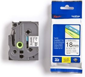 Originální kazeta s laminovanou páskou TZe-241 kompatibilní s širokou řadou tiskáren Brother P-touch je zvláště všestranná díky své snadno čitelné černé a bílé barvě - ideální pro domácnost, kancelář a další pracoviště.Originální kazeta s páskou Brother TZe-241 - černý tisk na bílé, šířka 18 mm