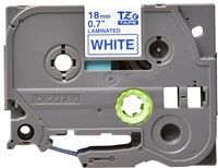 BROTHER TZe-243 bílá / modrá (18mm laminovaná)