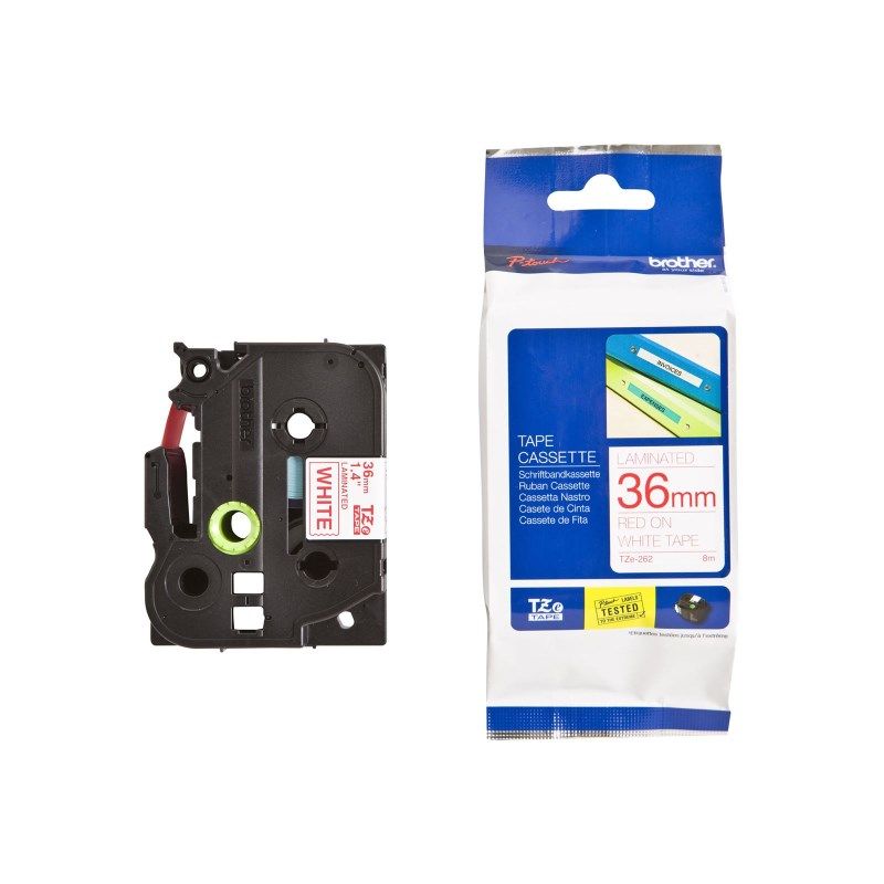 Originální kazeta s páskou Brother TZe-262 - červený tisk na bílé, šířka 36 mmOriginální kazeta s laminovanou páskou TZe-262 kompatibilní s širokou řadou tiskáren Brother P-touch je zvláště všestranná díky své snadno čitelné červené a bílé barvě - ideální pro domácnost, kancelář a další pracoviště.