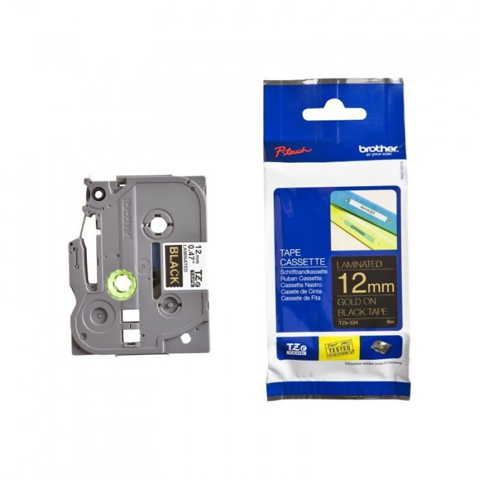 BROTHER TZe-334 černá/zlatá (12 mm Laminovaná)