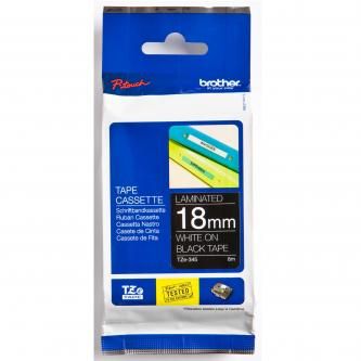 Originální kazeta s páskou Brother TZe-345 - bílý tisk na černé, šířka 18 mmOriginální kazeta s laminovanou páskou TZe-345 kompatibilní s širokou řadou tiskáren Brother P-touch je zvláště všestranná díky své snadno čitelné bílé a černé barvě - ideální pro domácnost, kancelář a další pracoviště.