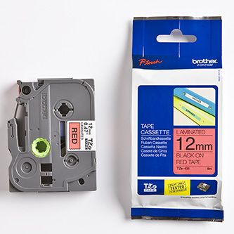 Originální kazeta s páskou Brother TZe-431 - černý tisk na červené, šířka 12 mmOriginální kazeta s laminovanou páskou TZe-431 kompatibilní s širokou řadou tiskáren Brother P-touch je zvláště všestranná díky své snadno čitelné černé a červené barvě - ideální pro domácnost, kancelář a další pracoviště.