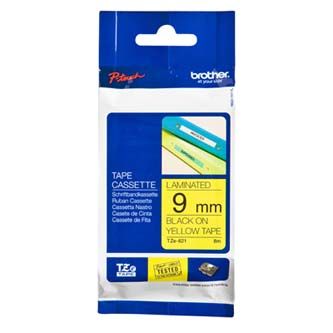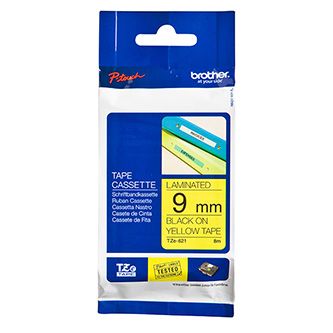 Originální kazeta s páskou Brother TZe-621 - černý tisk na žluté, šířka 9 mmOriginální kazeta s laminovanou páskou TZe-621 kompatibilní s širokou řadou tiskáren Brother P-touch je zvláště všestranná díky své snadno čitelné černé a žluté barvě - ideální pro domácnost, kancelář a další pracoviště.