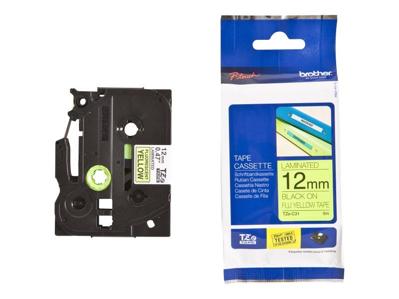 Originální kazeta s páskou Brother TZe-C31 - černý tisk na fluorescenční žluté, šířka 12 mmOriginální kazeta Brother TZe-C31 s černým tiskem na fluorescenčním žlutém podkladu je perfektní pro vytváření štítků, které zaujmou pozornost na důležité informace, jako je tvorba výstražných značek nebo kategorizace speciálních zařízení. Pomocí TZe-C31 můžete rychle zjistit důležité informace pro jakoukoliv mimořádnou situaci. Kompatibilní s tiskárnami štítků P-touch, které mají logo TZ nebo TZe na krytu kazety s páskou.