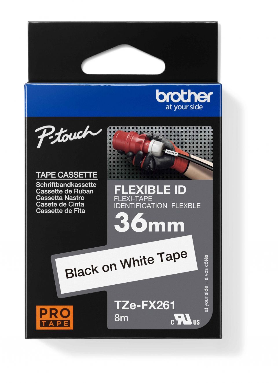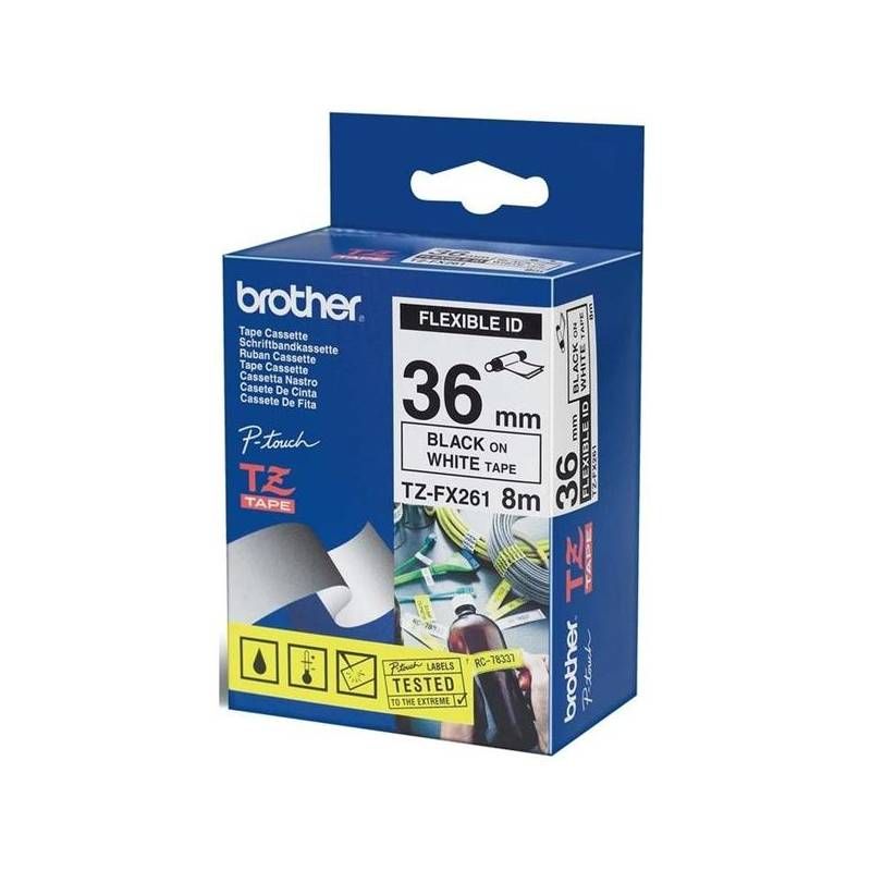 Originální kazeta s páskou Brother TZe-FX261 - černý tisk na bílé, šířka 36 mmIdeální pro vytváření identifikačních štítků pro kabely, vodiče, PVC trubky nebo jakéhokoliv jiné válcovité tvary. Speciální lepidlo pásky Brother TZe-FX261 s černým tiskem na bílém podkladu zajišťuje, že vaše důležité štítky budou mít dlouhou životnost. Kompatibilní s tiskárnami štítků P-touch, které mají logo TZ nebo TZe na krytu kazety s páskou.