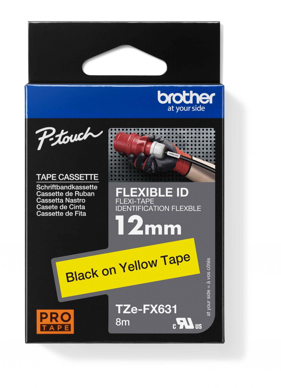 Ideální pro vytváření identifikačních štítků pro kabely, vodiče, PVC trubky nebo jiné válcovité tvary. Speciální lepidlo pásky Brother TZe-FX631 s černým tiskem na žlutém podkladu zajišťuje, že vaše důležité štítky budou mít dlouhou životnost. Kompatibilní s tiskárnami štítků P-touch, které mají logo TZ nebo TZe na krytu kazety s páskou.*Šířka 12 mm, délka 8 m