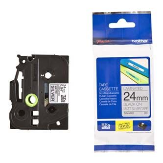 Originální kazeta s páskou Brother TZe-M951 - černý tisk na stříbrné matné, šířka 24 mmČerný tisk na matném stříbrném povrchu pásky u kazety TZe-M951 je dokonalý pro tvorbu atraktivních štítků pro zobrazení důležitých výrobních informací nebo elektrotechnických bezpečnostních zkouškách. Tato odborně navržená laminovaná páska je vhodná pro vnitřní i venkovní použití a je kompatibilní s tiskárnami štítků P-touch, které mají logo TZ nebo TZe na krytu kazety s páskou.