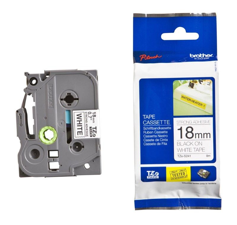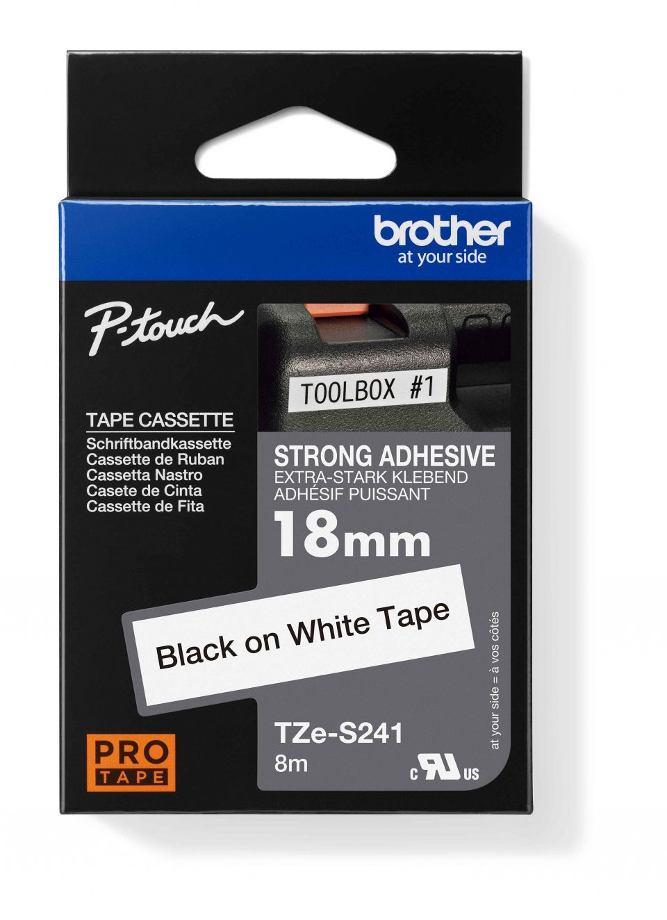 Originální kazeta s páskou Brother TZe-S241 - černý tisk na bílé, šířka 18 mmOriginální kazeta s laminovanou páskou TZe-S241 kompatibilní s širokou řadou tiskáren Brother P-touch je zvláště všestranná díky své snadno čitelné černé a bílé barvě - ideální pro domácnost domácnosti, kancelář a další pracoviště.