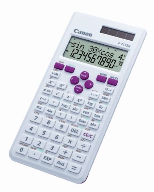 NEJNOVĚJŠÍ MULTIFUNKČNÍ VĚDĚCKÝ KALKULÁTOR CANON F-715SGPokročilá vědecká kalkulačka F-715SG s dvouřádkovým displejem LCD je k dostání ve třech barevných provedeních. Je částečně vyrobena z recyklovaných materiálů společnosti Canon, a proto je jasnou volbou pro udržitelnost životního prostředí.