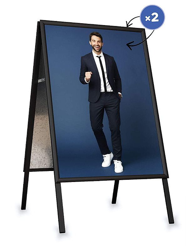 Černý reklamní A stojan s ostrými rohy A1 - profil 25 mm