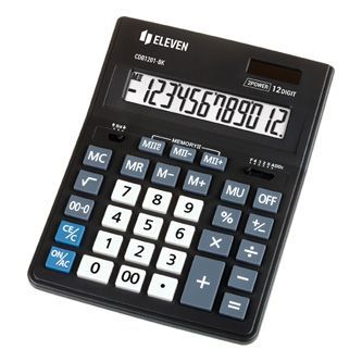 | Stolní kalkulačka: 12 mísný displej 4 tlačítka paměti : MC, MR, M+, M- výpočet marže [MU] Zaokrouhlování Odmocnina [?] Dvě paměti [MII] Změna [+/-] Desetinná čárka Procenta [%] Dvojitá nula [00] Dvojí napájení: battery & solar |