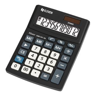 | Stolní kalkulačka: 12 místný displej 4 paměťové klávesy: MC, MR, M+, M- Odmocnina [?] Změna [+/-] Mazání Procenta [%] Dvojitá nula [00] Dvojí napájení: battery & solar |