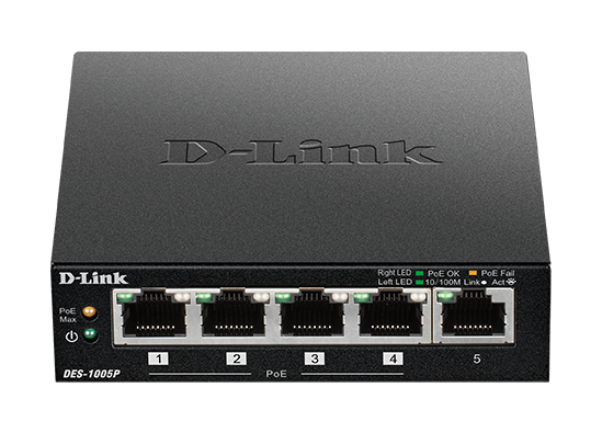 D-Link DES-1005P 5-Port Fast Ethernet PoE Desktop Switch