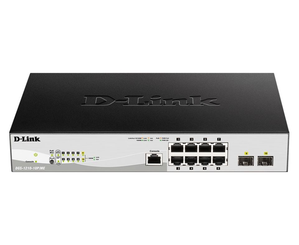 D-Link DGS-1210-10P/ME 8-Port 10/100/1000BASE-T PoE + 2-Port 1 Gbps SFP Metro Ethernet Man