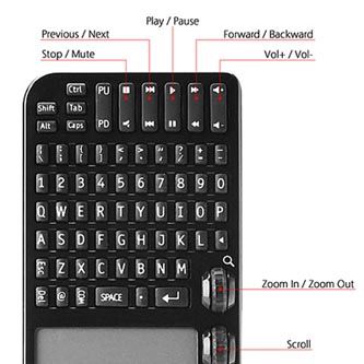 Jedinečný produkt, který přináší komunikaci se Smart Tv nebo počítačem. Snoubí v sobě základní funkce klávesnice a myši. Můžete scrollovat stránky, zadávat příkazy tlačítky a touchpadem, zoomovat stránky či fotky.
