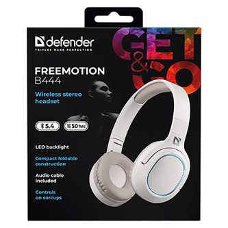 Defender FreeMotion B444 sluchátka s mikrofonem, bezdrátová, béžová, LED podsvícení
