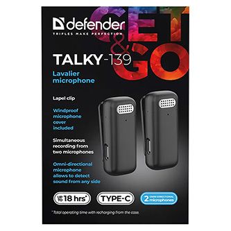 Defender, Lavalier mikrofon, TALKY-139, černý