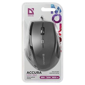Drátová optická myš Defender Accura MM-362Myš Accura MM-362, vhodná pro práci i zábavu, disponuje specifickým tvarem, který napomáhá nejen Vašemu zdraví, ale i pohodlí. Boční strany disponují gumovým povrchem a speciální tvarovou úpravou pro minimální kluz z ruky.