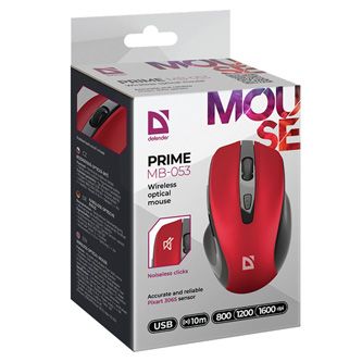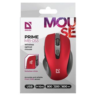 Defender Myš PRIME MB-053, 1600DPI, 2.4 [GHz], optická, 6tl., bezdrátová, červená, 1 ks AA